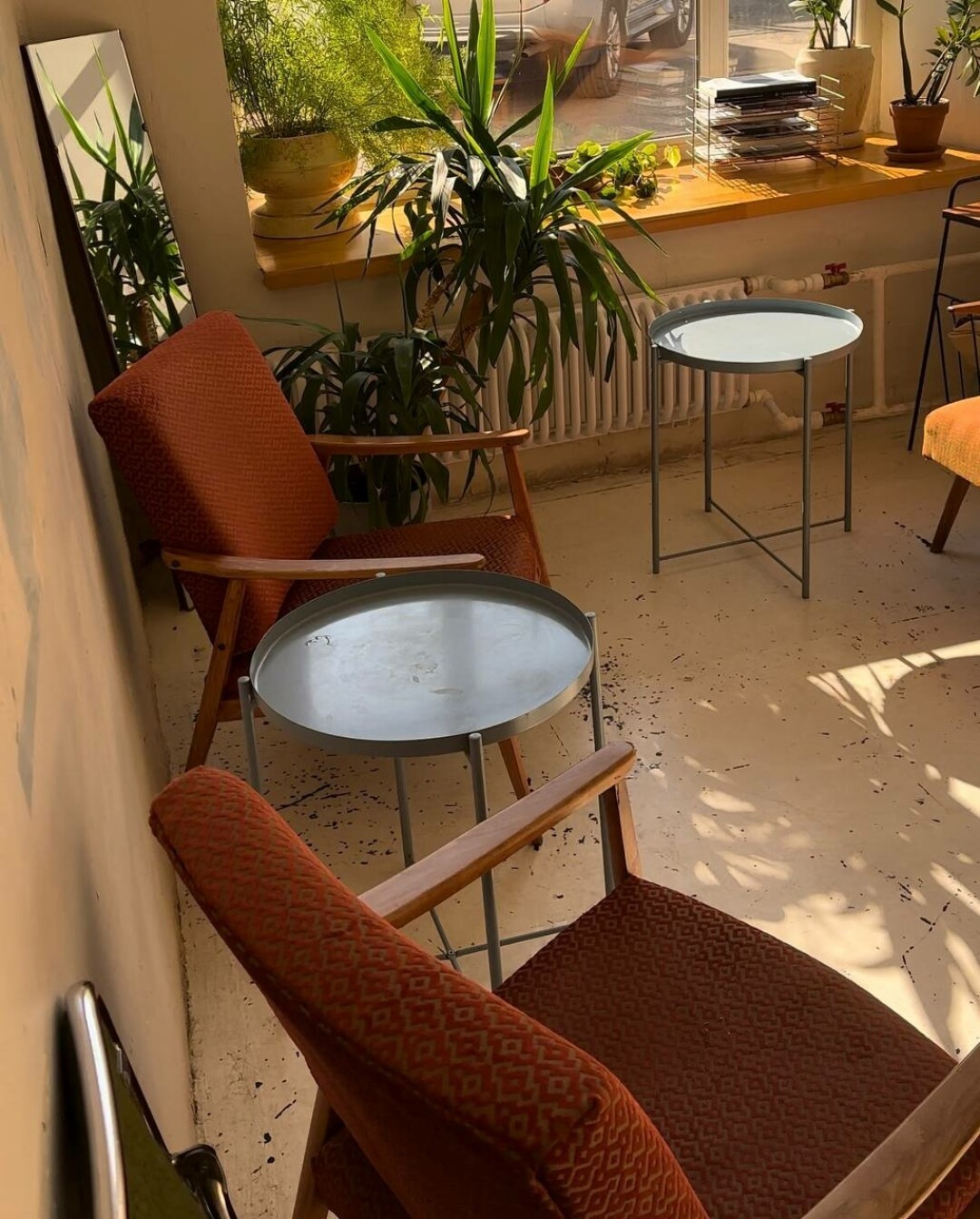 Безупречные фильтры и прочие воронки в солнечных лучах. Если любите спешалти так же, как я, наверняка обрадуетесь, что здесь ежедневно предлагают три вкуса на выбор от самых умеренных Бразилии и Колумбии до сладкой Эфиопии и кислотной Кении. Все можно попробовать, чтобы определиться. Закусить свежей булкой. Погладить своего или чужого барбоса, их сюда с радостью пускают.