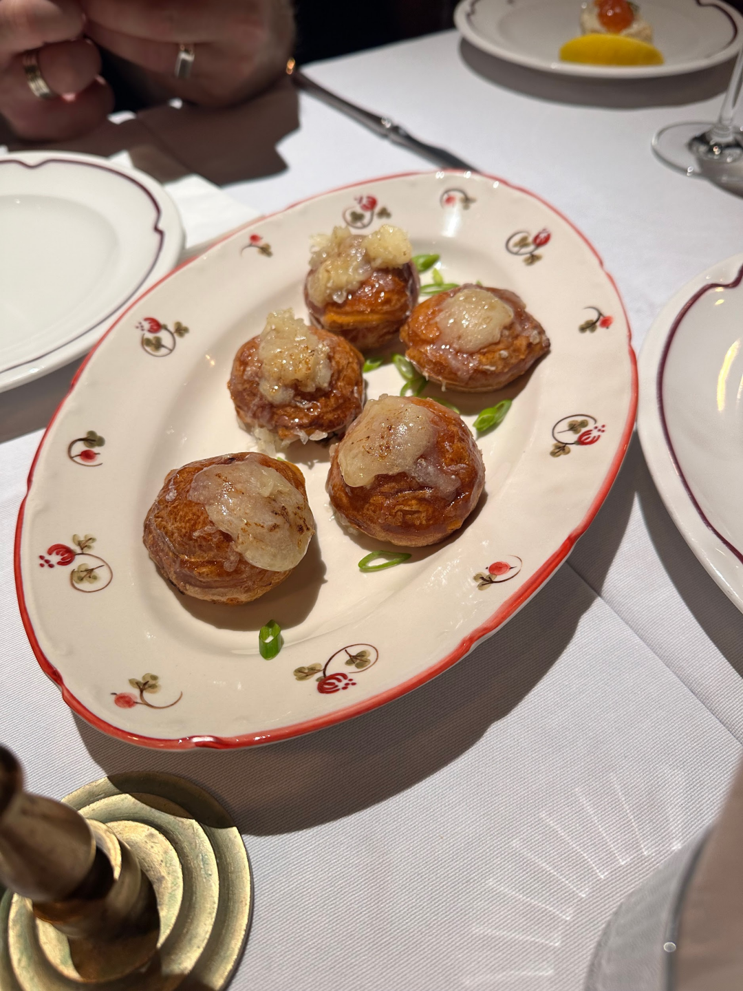 Здесь идеальный борщ по-шаляпински цвета и вкуса первой влюбленности. Еще хороши гужеры, паштеты, маринованный виноград и вообще вся мелочь из раздела закусок. Все надо залить морем Шампани, благо здесь есть из чего выбрать.