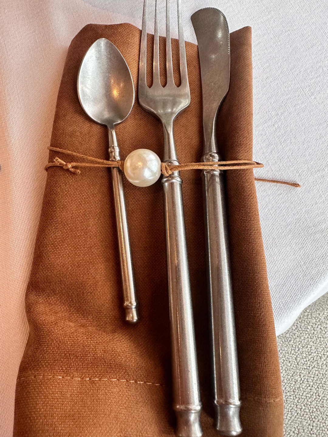 Здесь вообще все просто и бесконечно глубоко, начиная с сервировки, где даже приборы перехвачены ниткой с жемчужиной (именно так и переводится название, кстати), заканчивая чаем на серебряном подносе с вяленой хурмой и лукумом. Ценю за вкус, колорит и какой-то даже изощренный минимализм. Последний лучше всего проявляется в коктейлях, чего только стоит коктейль «На восточном базаре» (кактус, перец, чача) или «Ловцы жемчуга» (фейхоа, лайм, игристое).
