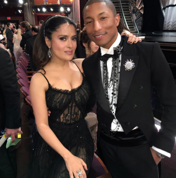 Первая мексиканка, номинированная на премию «Оскар» еще в 2003-м году, спустя 14 лет не теряет интереса к церемонии и постит селфи «наудачу» с Фарреллом Уильямсом. Его номинация в победы, увы, не превратилась. Что ж, бывает. Однако и попозировать на камеру с такой красоткой дорогого стоит!