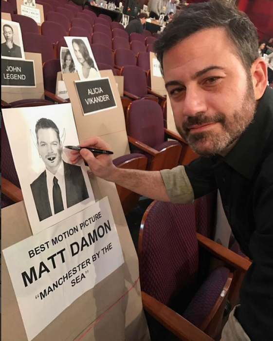 Джими Киммел в очередной раз доказал, что смех — всему голова, и на правах ведущего премии подшутил над умницей Мэттом Дэймоном (почти Уиллом Хантингом, что уж). В остальном, Джимми подошел к своей роли со всей ответственностью, даже путаницу с «Ла-Ла Лэндом» «записал» на свой счет.