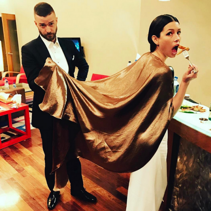 «После Оскара и перед вечеринкой необходимо подкрепиться», — решили в семье Тимберлейка и даже к трапезе подошли с юмором. Жаль только, на «Оскар» не номинируют за самые забавные фото супругов. Пара Джессика-Джастин точно бы победила.
