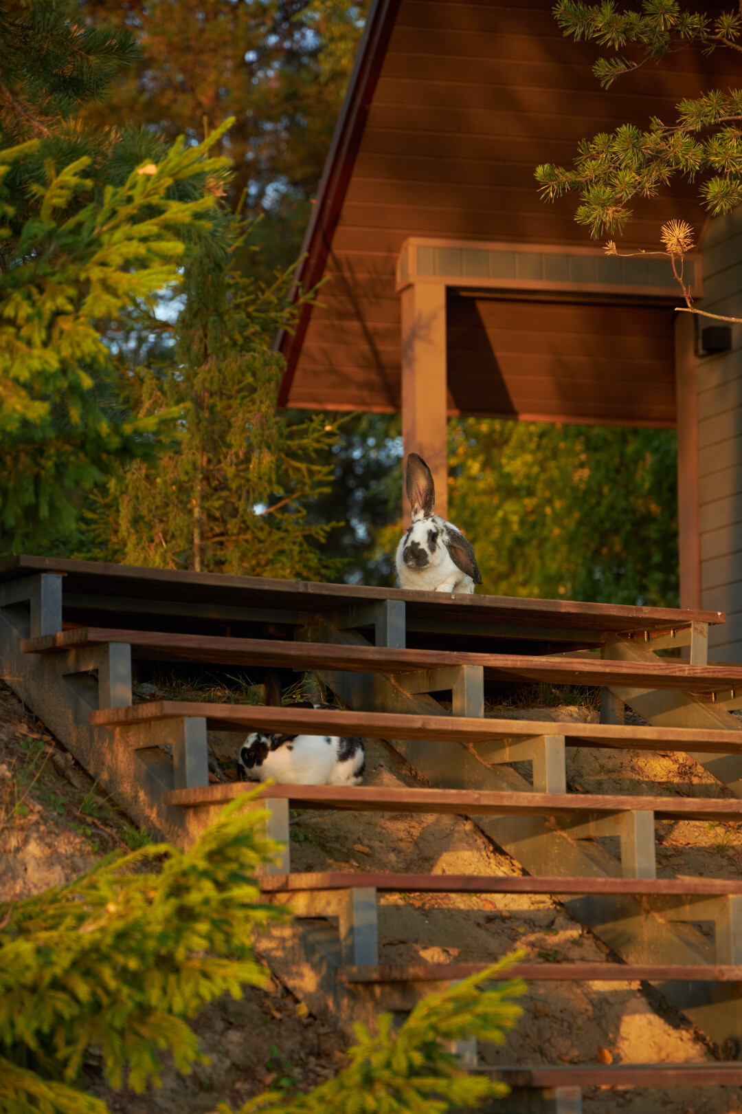 Сосновый бор, прозрачная река, кролики, белки, курицы и петухи, свинья Синди, медитации у костра, простая домашняя еда по старинным рецептам и дома с панорамными окнами и отсылками к сказкам — вот, что помогло нам заново родиться всего за сутки.