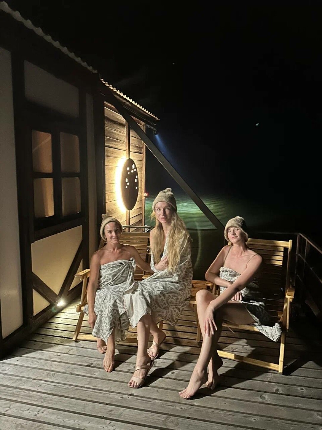 Но бест оф зе бест — плавучая баня. Говорят, в ней идеально на закате, но мы пошли против системы и заказали ее на ночь. Отошли на несколько метров от берега, парились и прыгали в холодную Немду под луной. После собрались в доме, затопили печь, заказали шашлык в местном ресторане, открыли игристое и сошлись на том, что живем свои лучшие жизни.