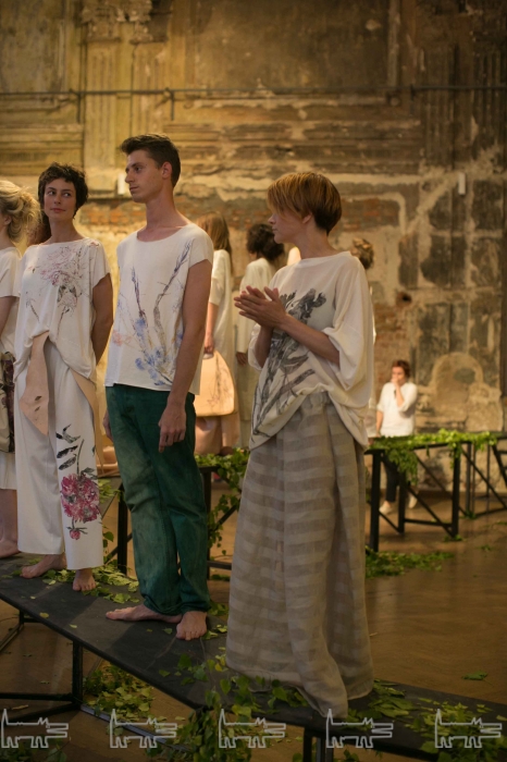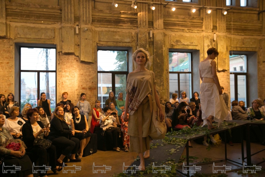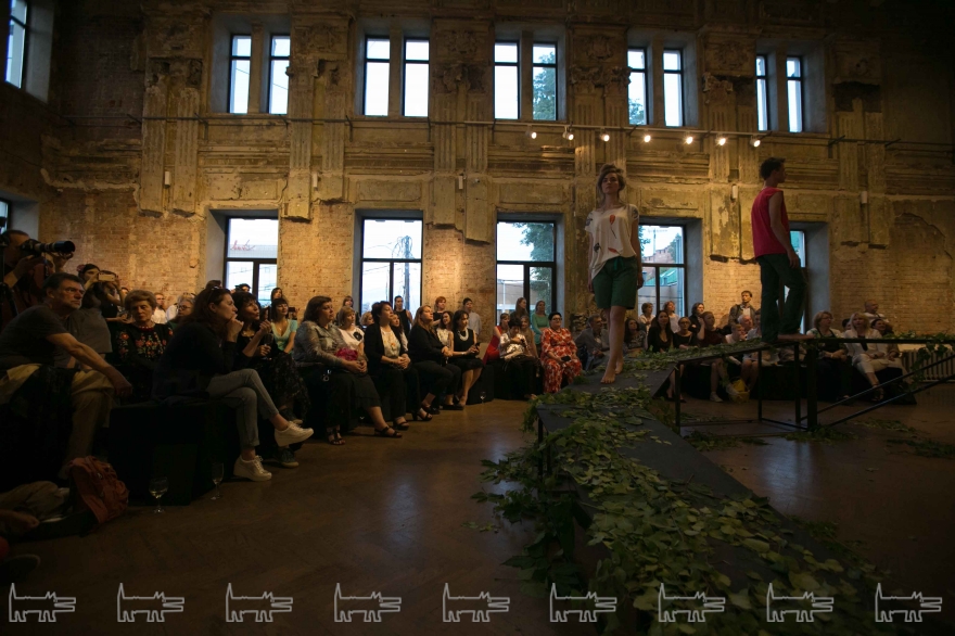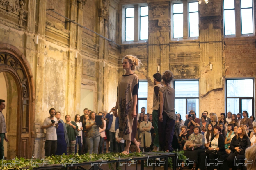 Изогнутый подиум с перепадами высот, весь усеянный зеленью, материализовался прямо посреди главного зала Futuro. Дефиле моделей сопровождала живая музыка от композитора Никиты Кочергина и вокалистки Анны Лукшиной. В финале показа к публике вышли авторы коллекции, а затем ведущий вечера Сергей Попов разыграл несколько призов среди гостей мероприятия. Пять человек выиграли годовые абонементы на посещение всех событий галереи, двое получили наряды из представленной коллекции и один из гостей стал обладателем подарочного сертификата от партнера вечера – компании Milo Group.