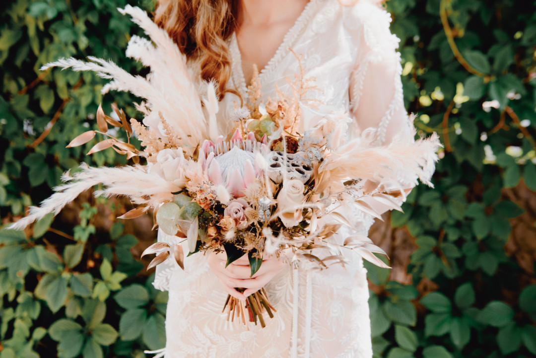 Природа в букетах этого бюро не инструмент для работы, а почетная гостья. Мох и кора, полевые цветы и колосья, пышное разнотравье и всегда только натуральные цветы – свадьбы, оформленные руками мастеров FLORISTINNA, всегда полны магии лесных туманов. Отлично подходит для модных в этом сезоне свадеб в стиле бохо.