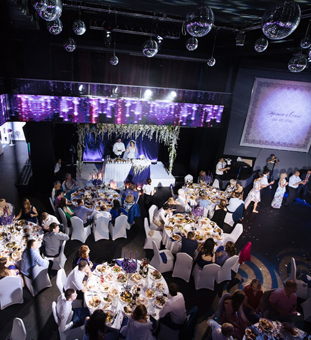 Одна из самых часто используемых площадок для свадеб, фуршетов и прочих важных мероприятий. Здесь есть сцена, двухуровневый зал с балконом на втором этаже, словом – все, что нужно для того, чтобы отметить свадьбу в стиле ночного клуба, когда ничто не отвлекает от веселья, и уже непонятно и неважно: день за окном или ночь.