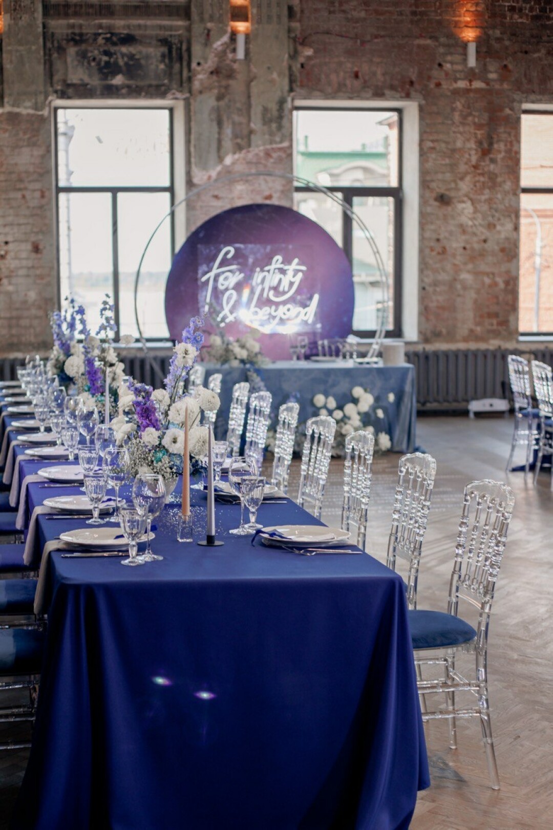 Зал Дворянского собрания, который окунули во тьму, выкрасив в серый. Тут даже царь был, и стены это помнят! Для больших королевских свадеб. Есть сцена, оформленный неоном холл. Сюда можно позвать любой кейтеринг – хоть «Горячо», хоть «Смарт».