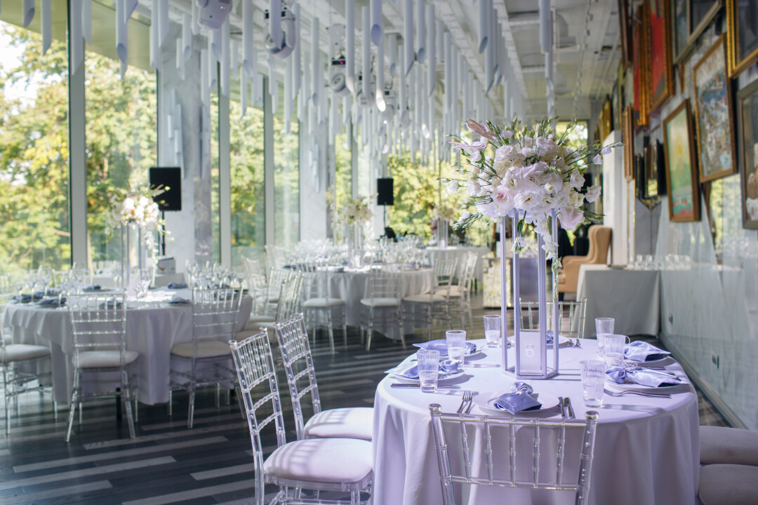 Если вам хочется окна в пол, реку и сад с доставкой ко столу. Если уж решили быть принцессой, значит, и замуж надо выходить в картинной галерее. Красивое, породистое пространство с лобби и балконами. Здесь можно снимать бесконечно.
