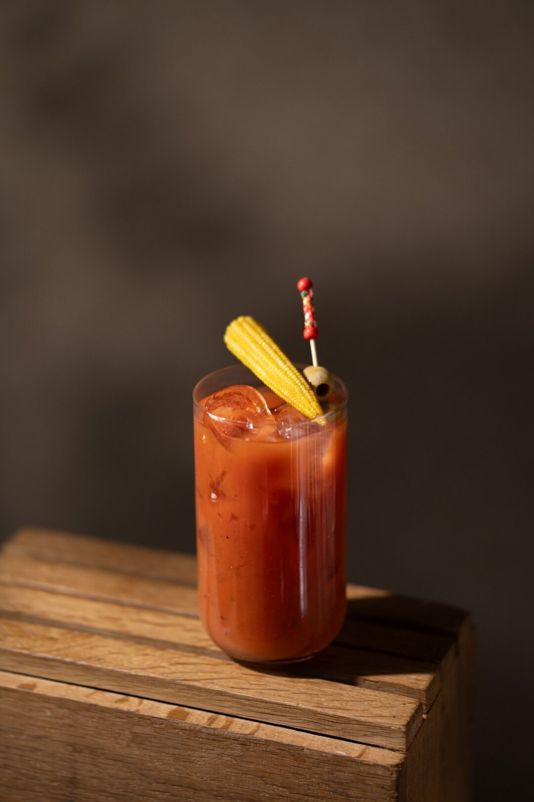 Мэри по-итальянски. Классический коктейль в итальянском стиле с акцентом во вкусе на сочный томат с пряностью от специй, послевкусием цитрусов в сочетании с маринованной кукурузой и оливками.