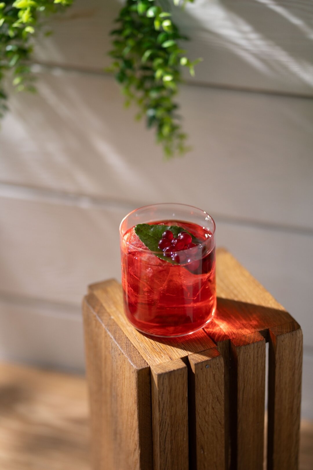 «Ягодная Славутница» — коктейль-оберег. Этот напиток — настоящая поэзия в бокале. В его основе: настойка на беленькой с жимолостью, дикой черникой и можжевельником; белый биттер и игристое.