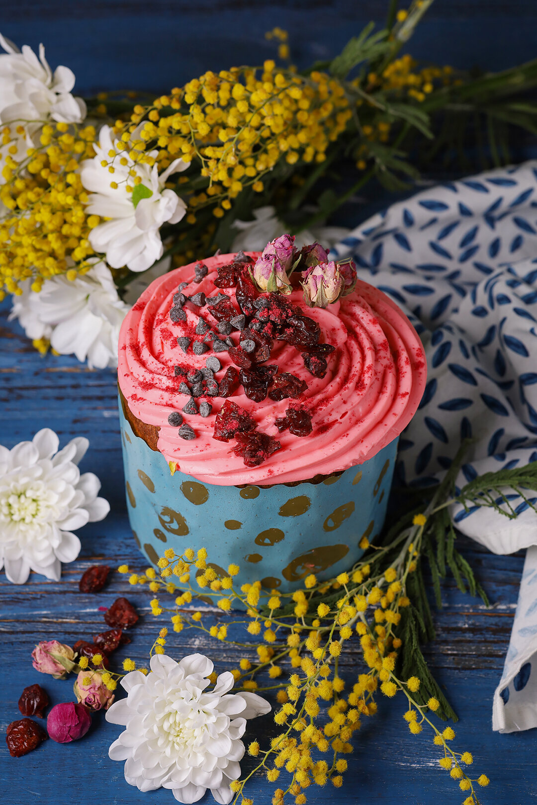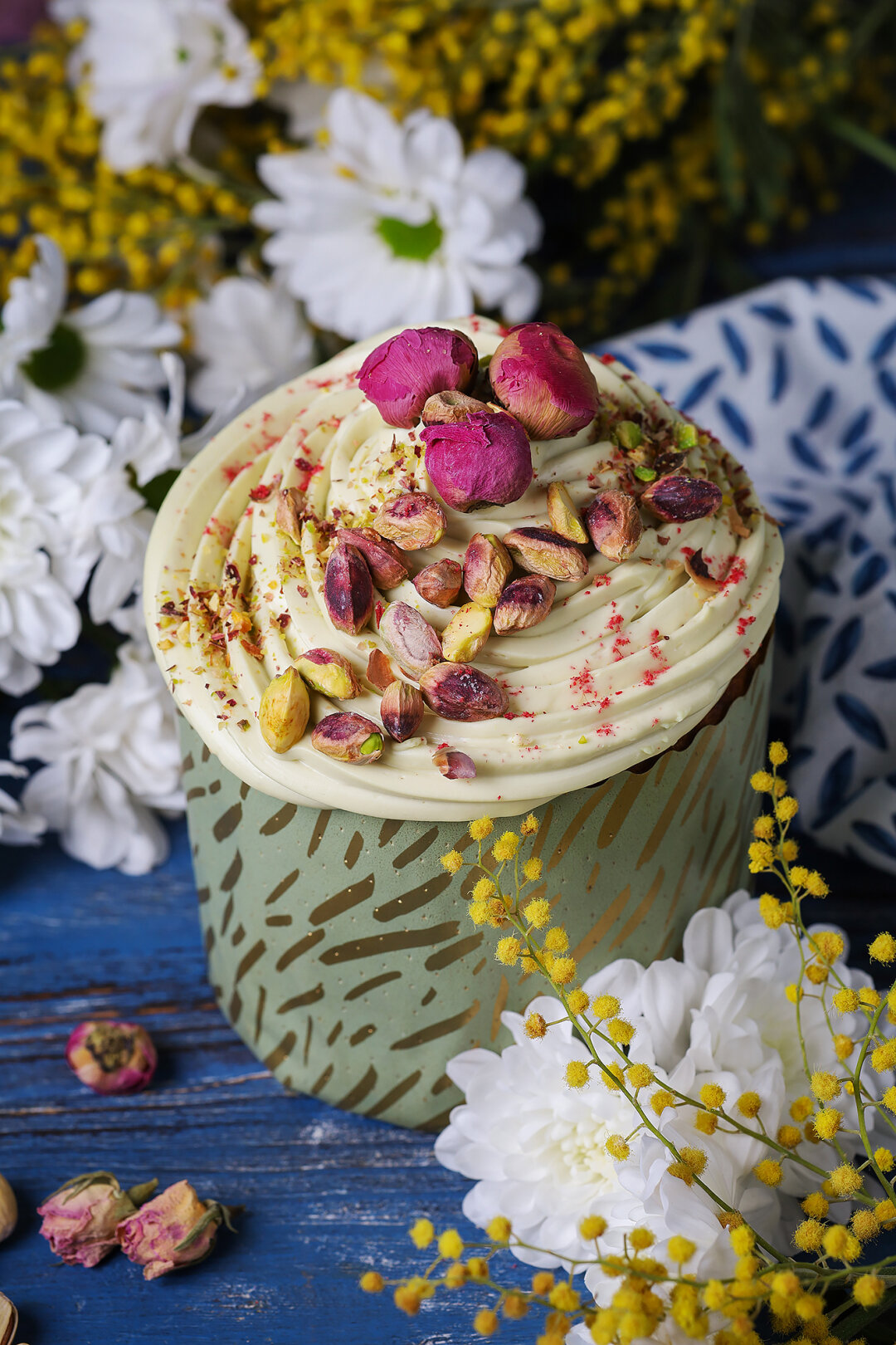 Фисташково-малиновый кулич