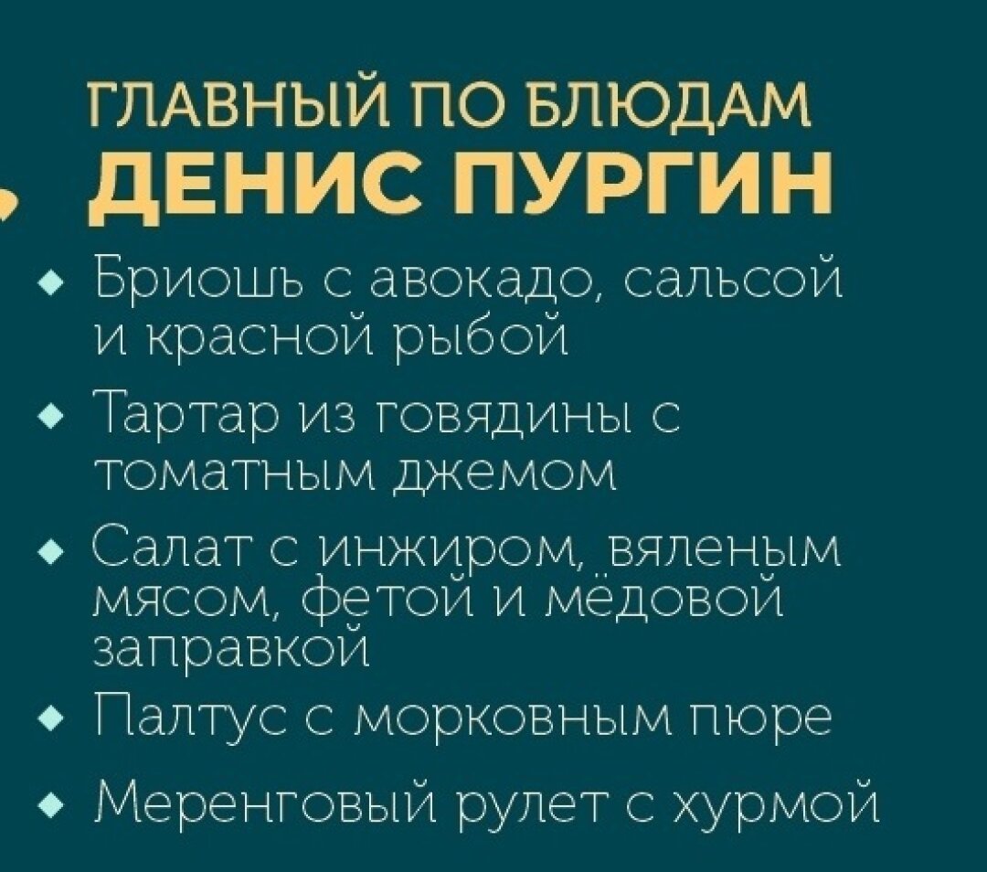 - Шеф-повар Леонид Иванов — автор более 15 ресторанов в России и за рубежом. Его стиль — современная интерпретация греческой и средиземноморской кухни, основанная на вкусе и качестве продукта. Вдохновение черпает из путешествий и культуры Средиземноморья.