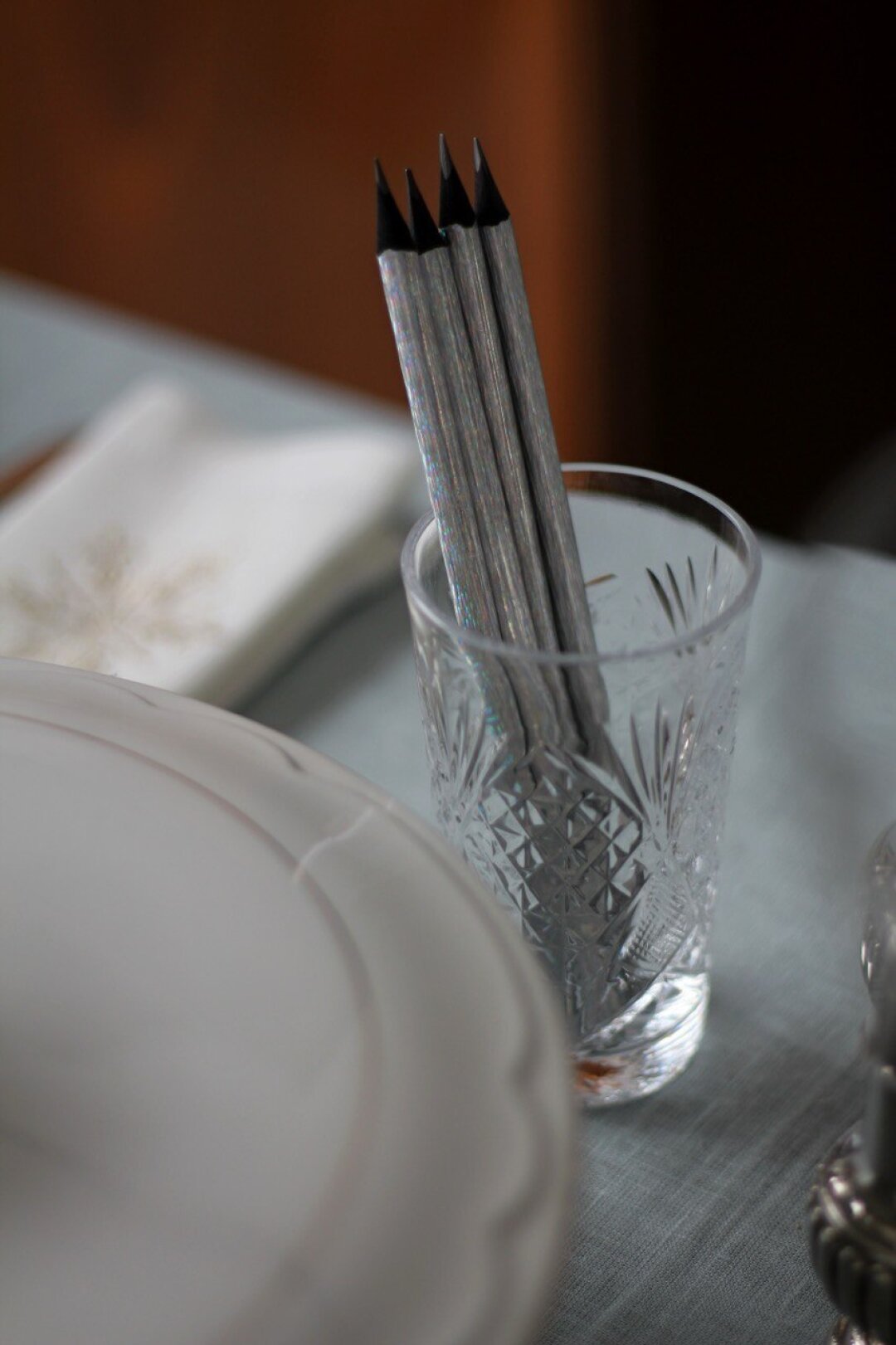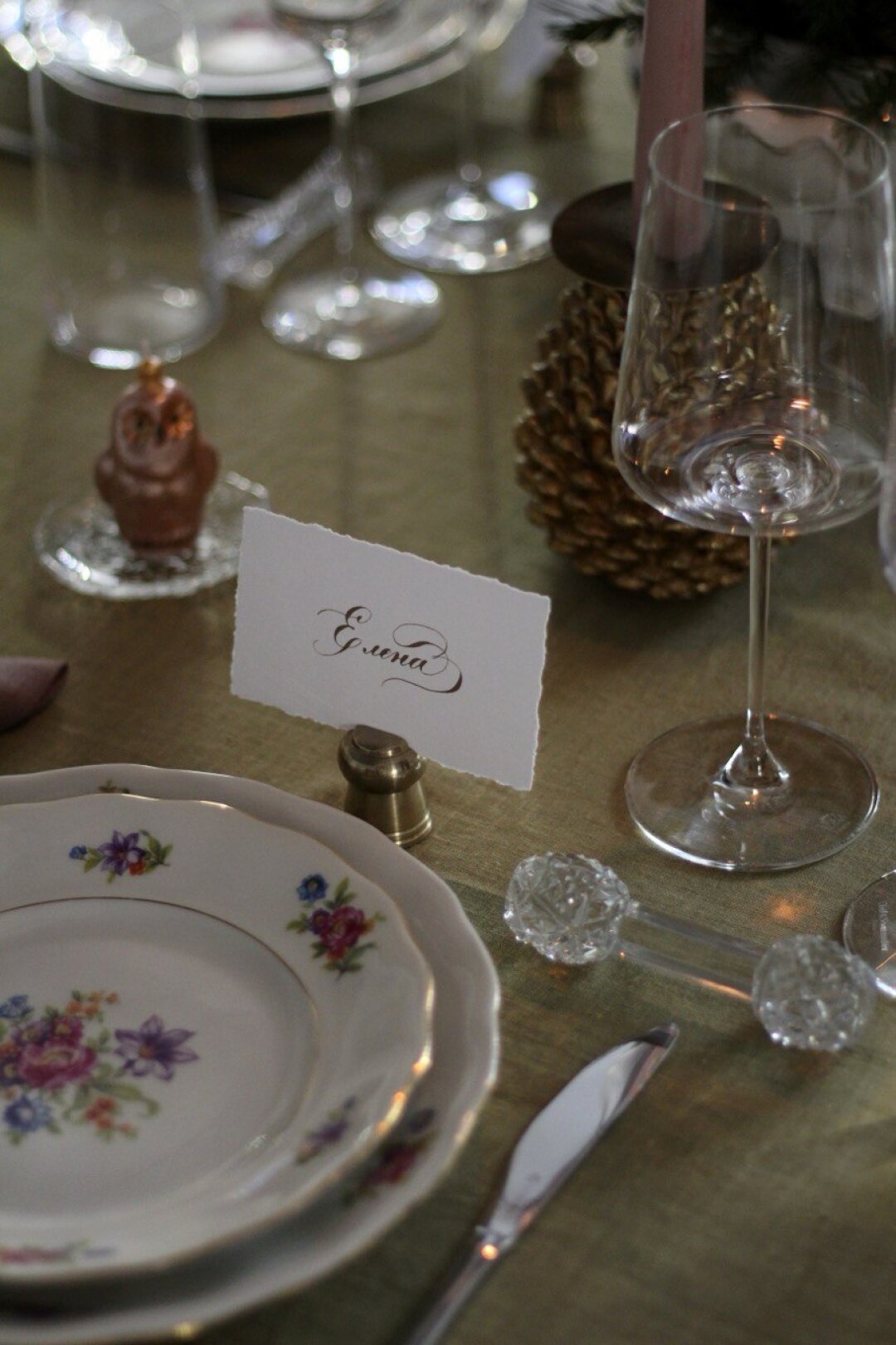 К созданию атмосферы праздника подходите творчески. Предусмотрите индивидуальные наборы для исполнения желаний (лист бумаги, карандаш, спичка, чиркало) и сервируйте в куверт. Печь новогоднее печенье во многих семьях традиция, используйте формочки в качестве колец для текстильных салфеток. Попросите детей нарисовать портреты каждого члена семьи и сделайте план рассадки за столом. Можно обратиться к специалисту по каллиграфии, который напишет имена гостей с особым вниманием к эстетике и стилю.