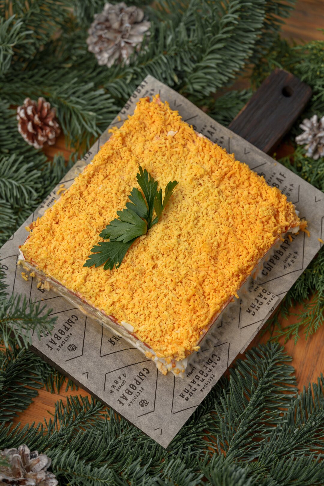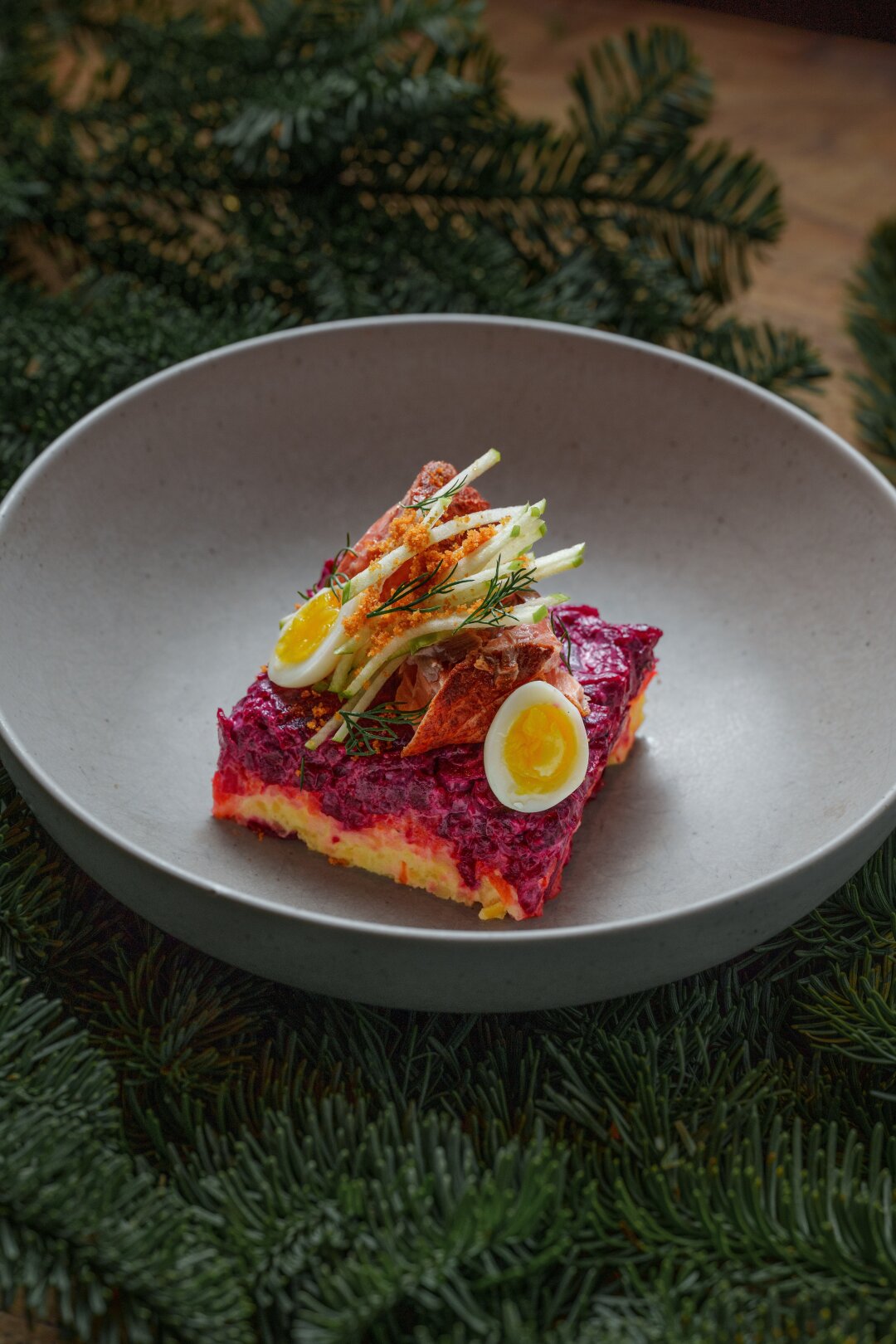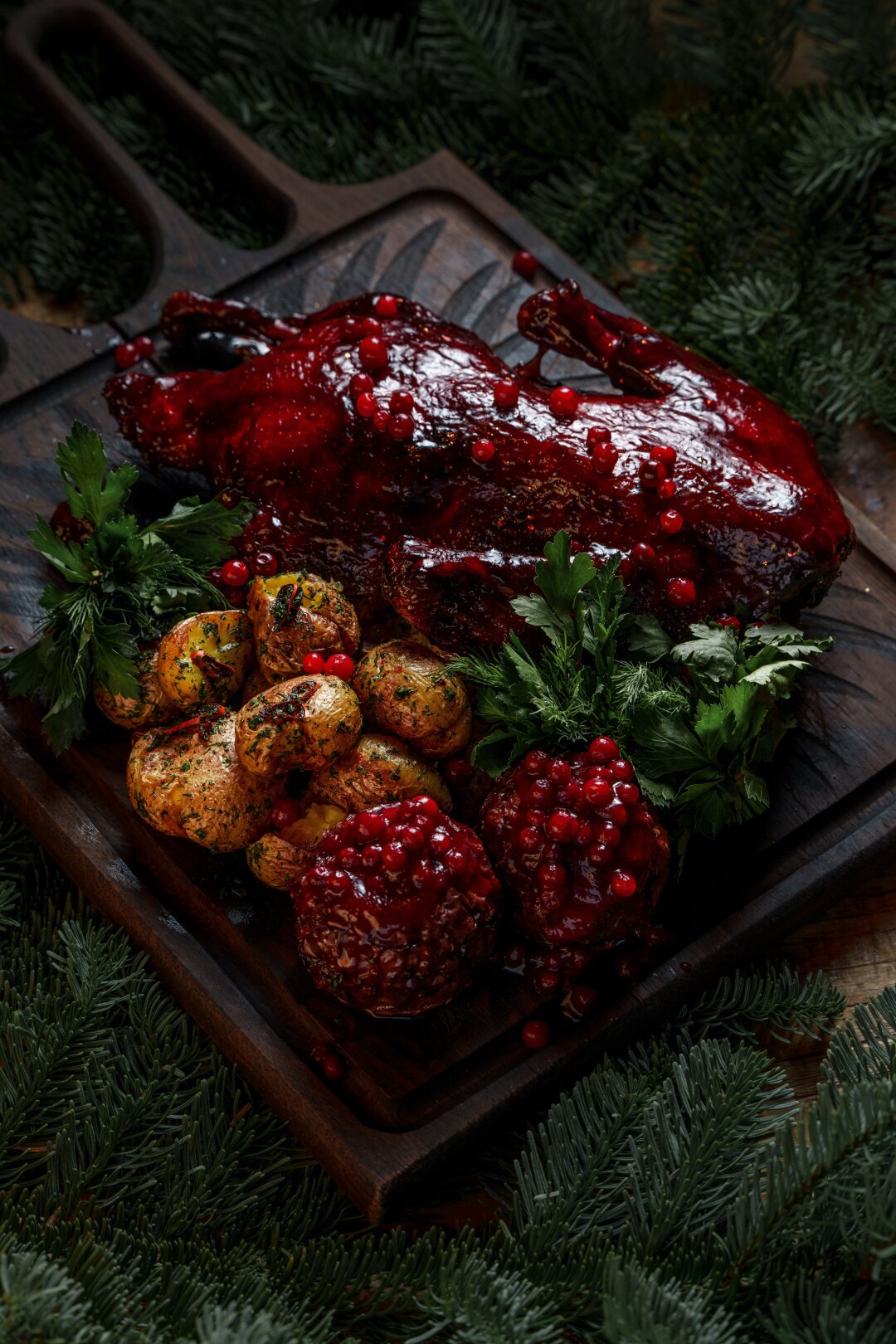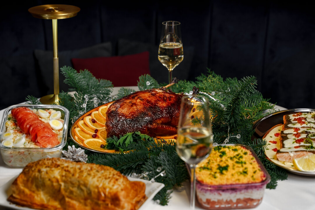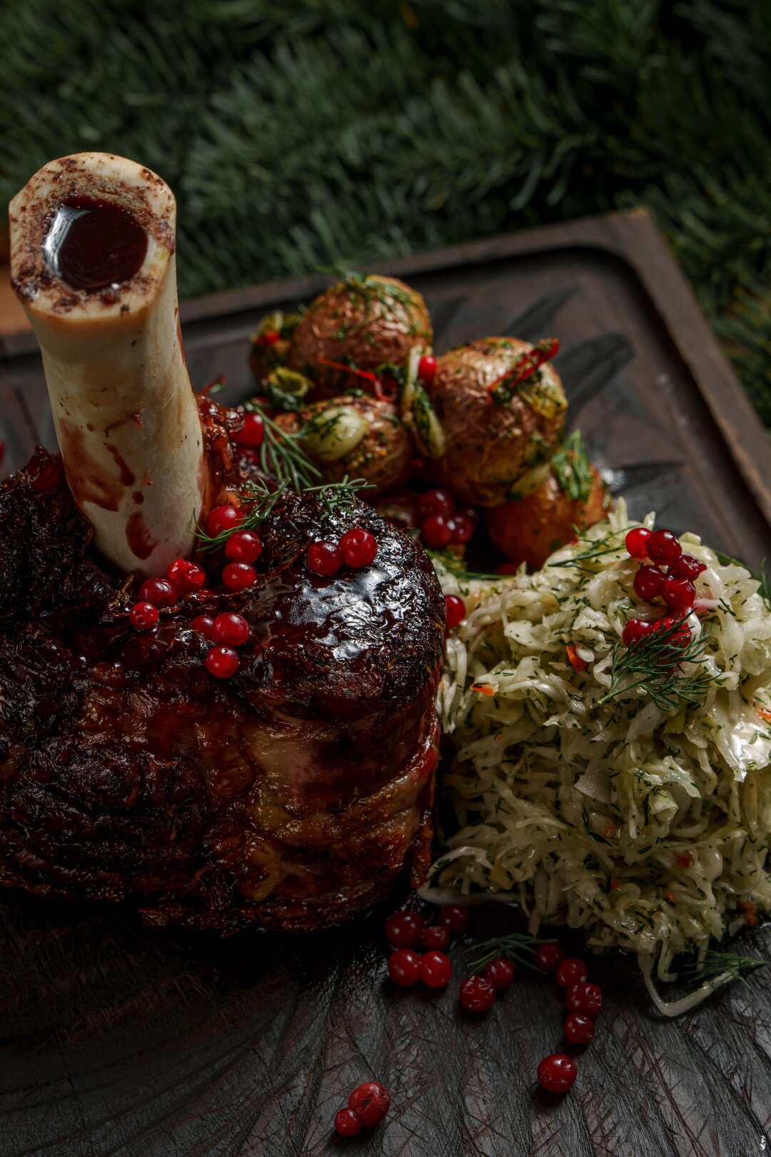 В новогоднем меню от «Горыныча»: оливье с языком и красной икрой, говяжья голень с картофелем и брусникой, запеченная утка и многое другое. Скидка 10% на предзаказ до 20 декабря.