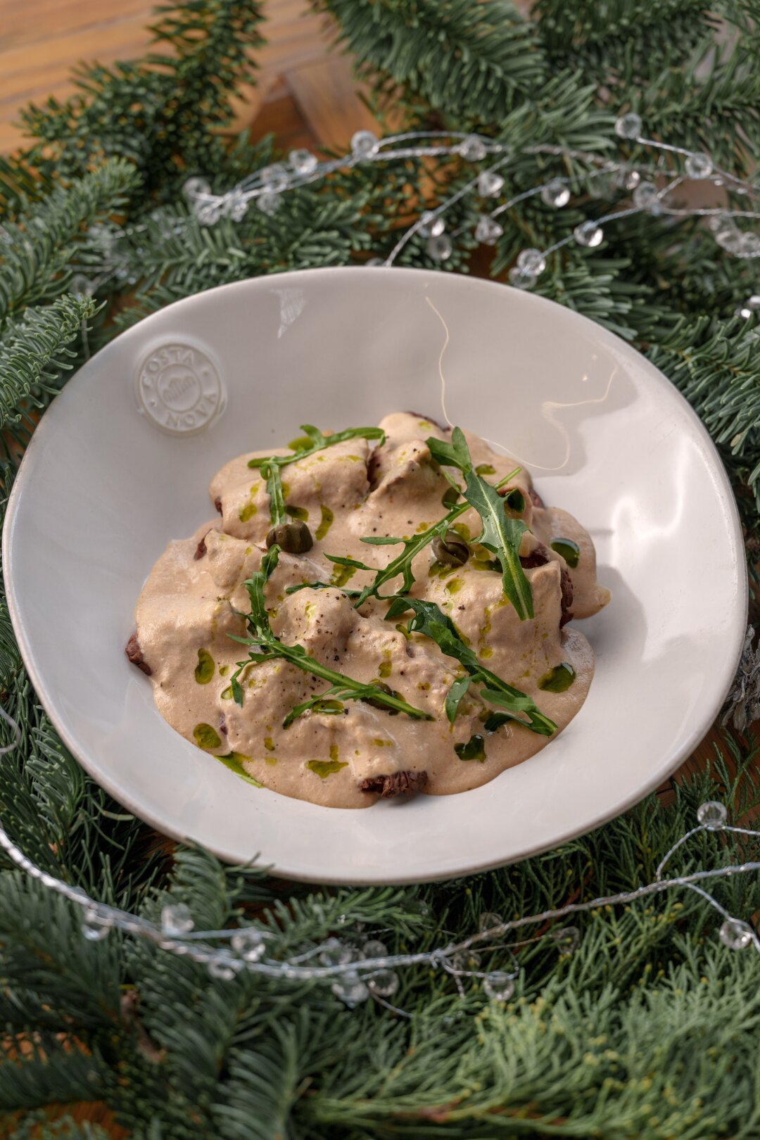 В новогоднем меню ресторана «Сыроварня»: оливье с лососем, мимоза с крабом, вителло тоннато, антипасти, баранья лопатка, лосось по-аджарски и многое другое для праздничного вечера! Скидка 10% на предзаказ до 20 декабря.