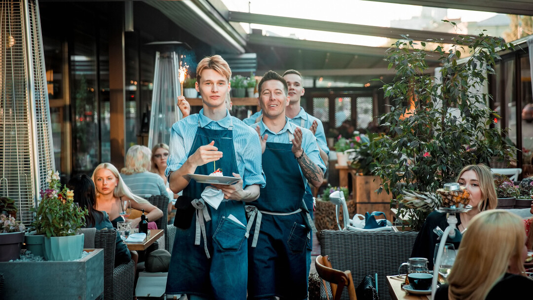 Каждый день ресторан проводит завтраки по специальному меню от шефа, с десяти утра до полудня по будням, и до четырнадцати часов – по выходным. В меню завтраков представлены блюда, вкус которых переносит в детство: разнообразные каши на выбор, картофельные вафли, свежая выпечка и круассаны, и конечно, румяные сладкие пончики с шоколадным кремом и голубикой.