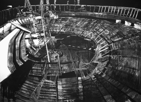 |  | 1. Первые пару работ серии сделала неосознанно: заброшенный бункер времен Второй мировой и док в Балаклаве, где некогда ремонтировали подводные лодки. В ходе работы началось осмысление темы и меня заинтересовало явление современной пещерной культуры. 2. Есть такое определение: постфотографическое зрение. Художники активно пользуются фотографией, но она лишь средство вдохновения. Раньше автор уезжал на пленер, а сейчас необходимости такой нет — в интернете масса материала. Сам выбор интересен — он тоже влияет на работу. Я не сижу, часами прочесывая файлообменники — сюжеты находятся сами. 3. Сейчас работаю исключительно акрилом, а раньше писала маслом и в работах было много цвета. Последний год пишу черно-белое. Сначала стала оставлять работы на стадии подмалевка в цветах сепии, сочетала масло и акрил, но постепенно ушла в монохром. В момент этого становления я активно интересовалось проходящим вокруг и общалась. Петербургские художники очень сильно повлияли. Но я активно опираюсь и на академическую школу. Хорошо, когда умеешь рисовать то, что задумал. 4. Это моя первая персональная выставка в Петербурге. Работая над серией, я думала, что хочу показать ее именно здесь, задолго до того, как поступило предложение. Я активный пользователь сети и куратор заметил меня едва ли не в фэйсбуке. Алена Шаповалова |