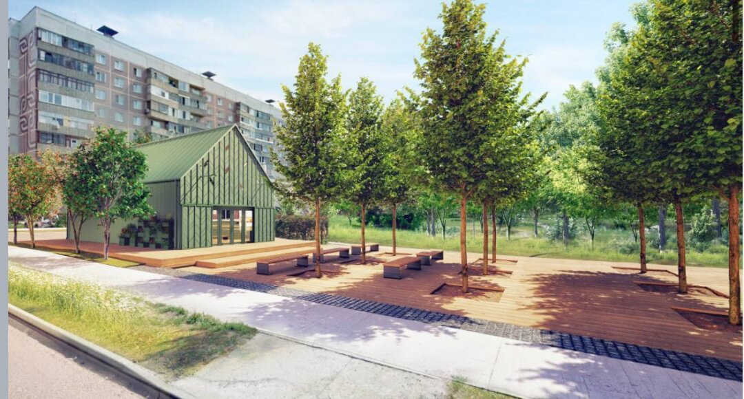 В сквере организуют скейтпарк, памптрек, зоны для воркаута, детские площадки и другие локации.