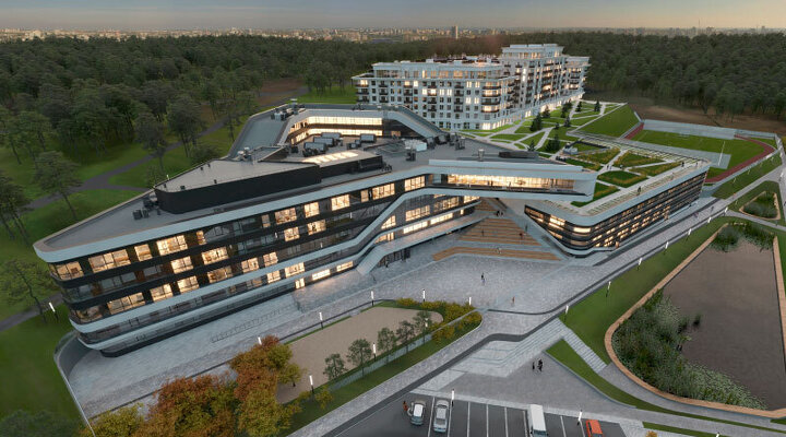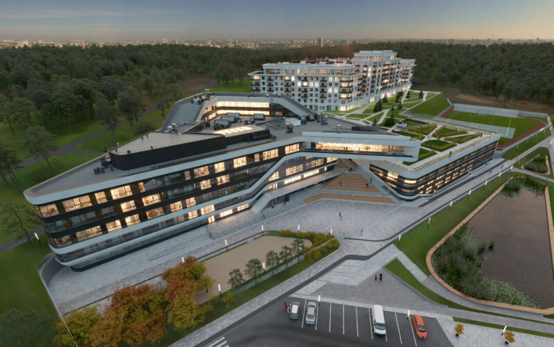 «Внешне она больше похожа на океанский лайнер, чем на школу, – рассказывает Артур Лотарев. – Футуристическая форма школы раскрывает основную идею – создать пространство для воспитания и развития лидеров будущего. Это не просто школа, а целый комплекс: помимо учебного блока, она включает спортивный блок с бассейном и спортзалами, и блок дополнительного образования со студиями и мастерскими, а еще – интернат. При этом в здании нет ничего лишнего. Композиция лишь подчиняется неправильной форме участка и сложной, но выверенной функциональной схеме».