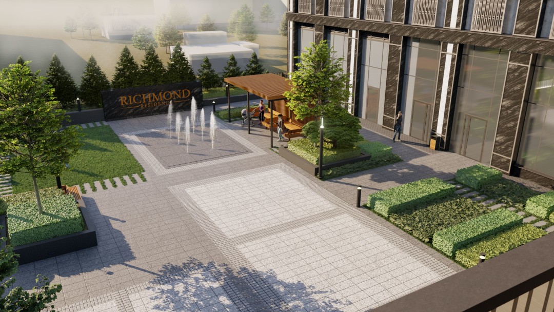 – При создании проекта дворового пространства разработчики руководствовались двумя важными принципами, – отмечает Татьяна Ващенко. – Первое: территория должна быть максимально функциональна и удобна для жителей всех возрастов. Здесь запланированы и детская игровая площадка, и спортивные объекты, и лаунж-террасы для отдыха. Второй важнейший принцип: эко-составляющая, близость к природе. Каждый городской житель, порой, испытывает стресс от недостатка зелени и чистого воздуха. Richmond Residence станет для жильцов не просто комфортным домом, а настоящей тихой гаванью на фоне городской суеты с зелеными деревьями, мягким газоном, прогулочной аллеей в стиле бонсай, собственным фонтаном.