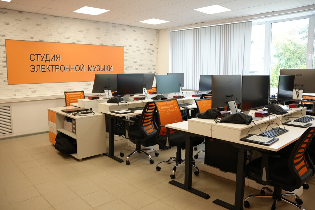 Три просторные творческие студии новой школы оснащены оборудованием для звукорежиссуры, создания электронной музыки, работы с фото- и видеоконтентом.
