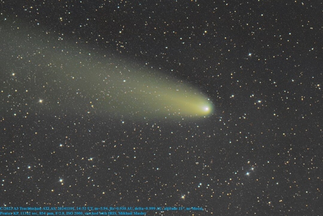 Самую яркую комету последних двух десятилетий C/2023 A3 (Цзыцзиньшань-ATLAS) можно наблюдать в Северном полушарии с помощью биноклей и небольших телескопов до конца декабря. Она видна сразу же после заката Солнца в западной части неба в созвездии Змееносца, недалеко от очень яркой звезды Арктур (альфа созвездия Волопаса). Об этом рассказала Альфия Нестеренко, заведующая Учебным астрофизическим автоматизированным комплексом Физического факультета НГУ, сообщает пресс-служба вуза.