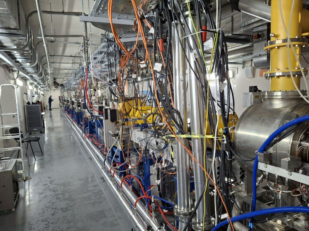 На строительной площадке ЦКП «СКИФ» в наукограде Кольцово Новосибирской области состоялся запуск линейного ускорителя — стартовой ступени ускорительного комплекса. Именно здесь ученые получают электроны, которые группируются в пучок, затем получают ускорение и энергию 200 миллионов электронвольт. Пучок из источника электронов (электронной пушки) пролетел сквозь всю структуру линейного ускорителя (25 м), его параметры зафиксированы системой датчиков, они соответствуют проектным.