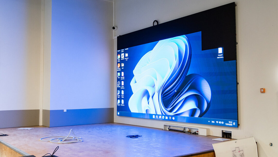 Оснащение корпуса поточных аудиторий нового кампуса НГУ вышло на финальную стадию. Завершены основные работы на 4-м и 5-м этажах; также смонтирована часть оборудования в многофункциональном пространстве на 1-м этаже — интерактивный экран, сцена, стеллажи, декоративные элементы. Большая часть поточных аудиторий и многие учебные классы оснащены партами и мебелью.