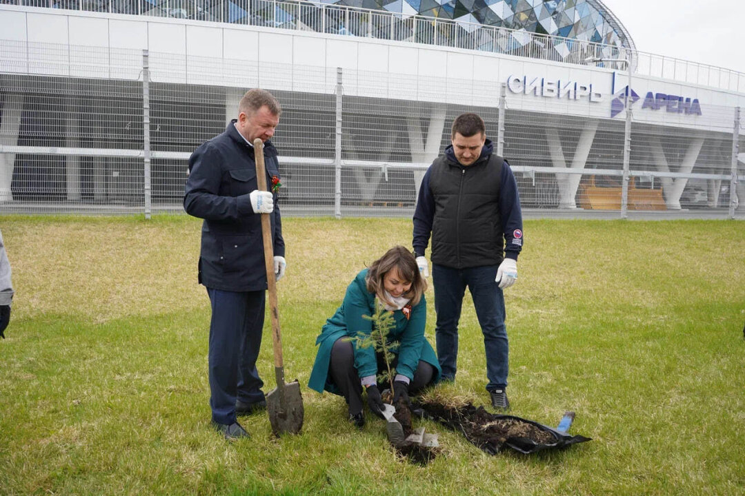 Участники центрального регионального мероприятия акции «Сад Памяти» высадили аллею памяти из 80 молодых елей, выращенных в питомнике Бердского лесхоза, по периметру здания новой многофункциональной ледовой арены в Новосибирске в честь 80-летия Великой Победы.