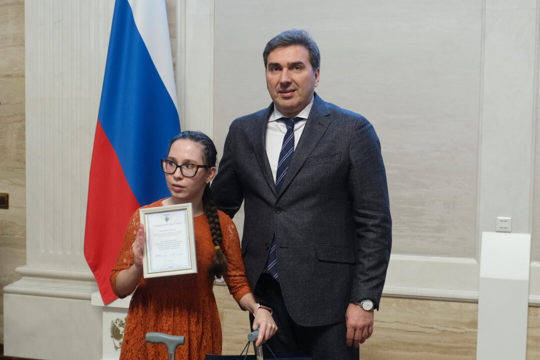 В правительстве региона состоялась торжественная церемония вручения свидетельств о назначении стипендий губернатора и благотворительного фонда «Наш день» одаренным детям‑инвалидам, добившимся высоких результатов в творческой деятельности. В этом году отбор прошел рекордный объём заявок – 96 из 20 муниципальных образований региона.