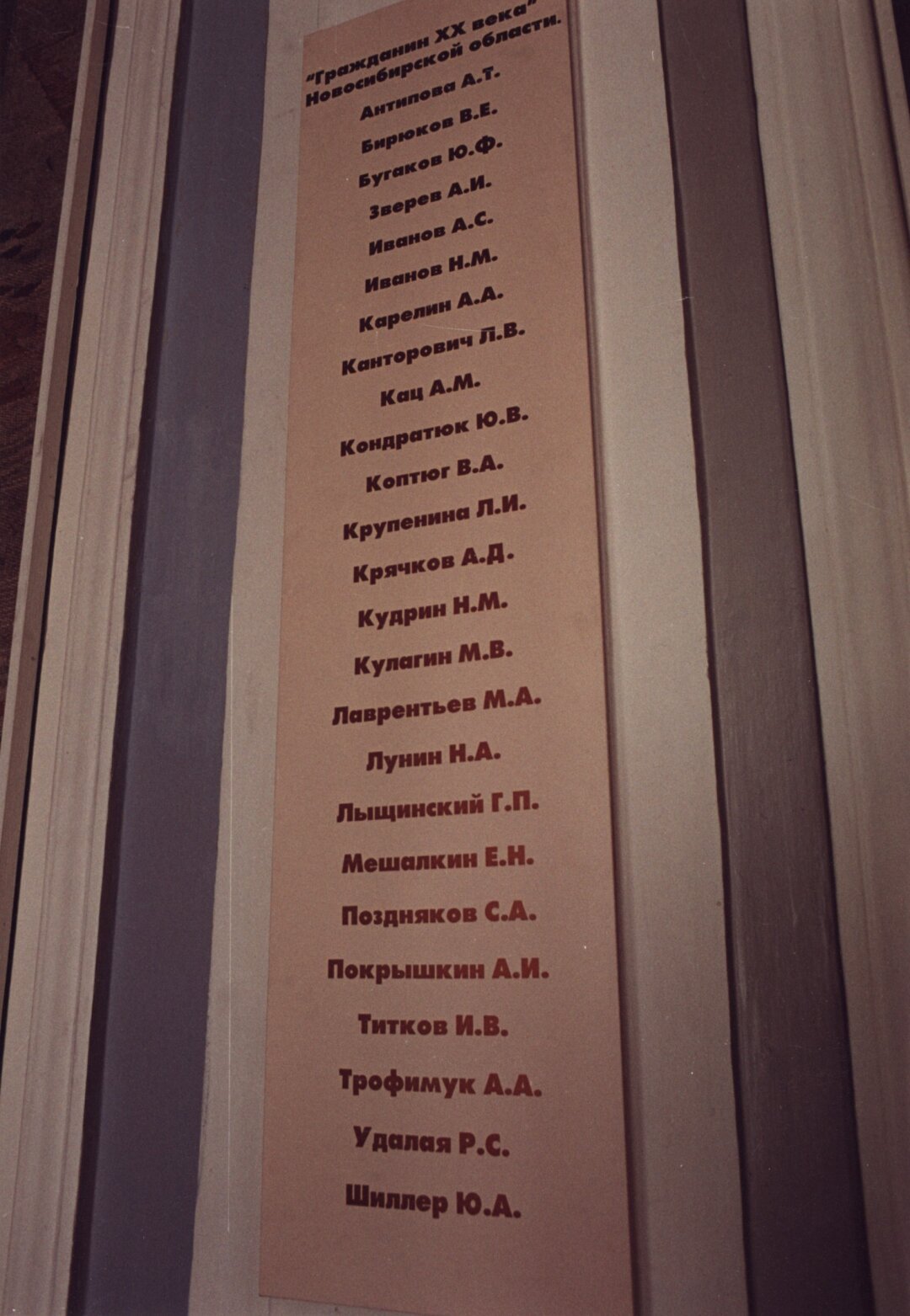 14 января 2001 года в Краеведческом музее прошла церемония чествования лауреатов почётного звания «Гражданин ХХ века Новосибирской области». В завершение мероприятия была заложена капсула времени с посланием новосибирцев – жителей ХХ века к потомкам, живущим в XXI веке.