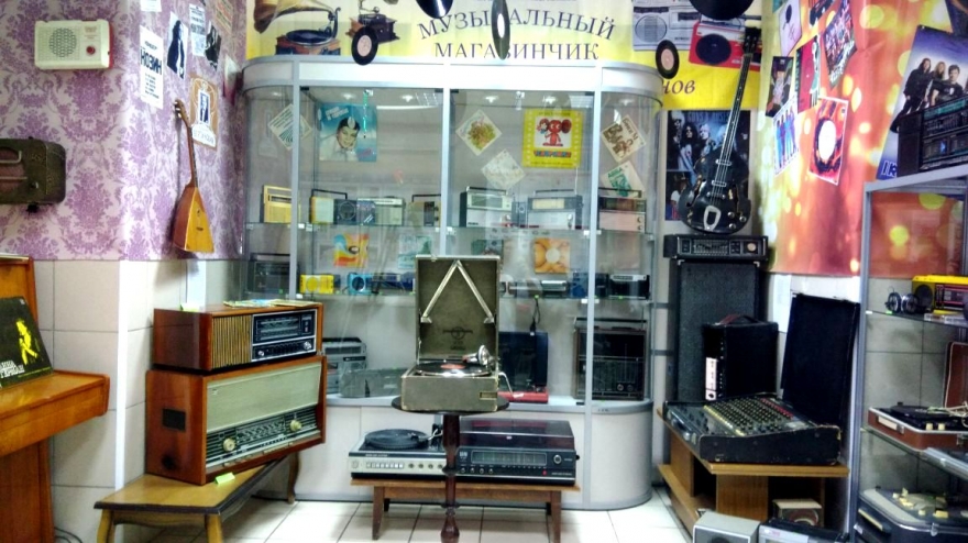 Встречать гостей будет молодая рокерша, в проклепанной кожаной косухе, бандане и джинсах 80-х годов. Среди экспонатов — старые радиолы и магнитофоны, виниловые пластинки, звукозаписывающая и звуковоспроизводящая аппаратура советской эпохи 1940-х–1990-х годов ХХ века. Сотрудники музея помогут посетителям узнать историю музыкальной техники «от патефона до магнитофона». В «Музыкальном магазинчике» будут представлены редкие экспонаты различных декад: магнитофоны «Комета», выпущенные на Новосибирском заводе «Точмаш», магнитофоны, радиолы и радиоприемники Бердского радиозавода, японский магнитофон Sanyo с интересной историей, гитара на которой играл Герой России Сергей Амосов.