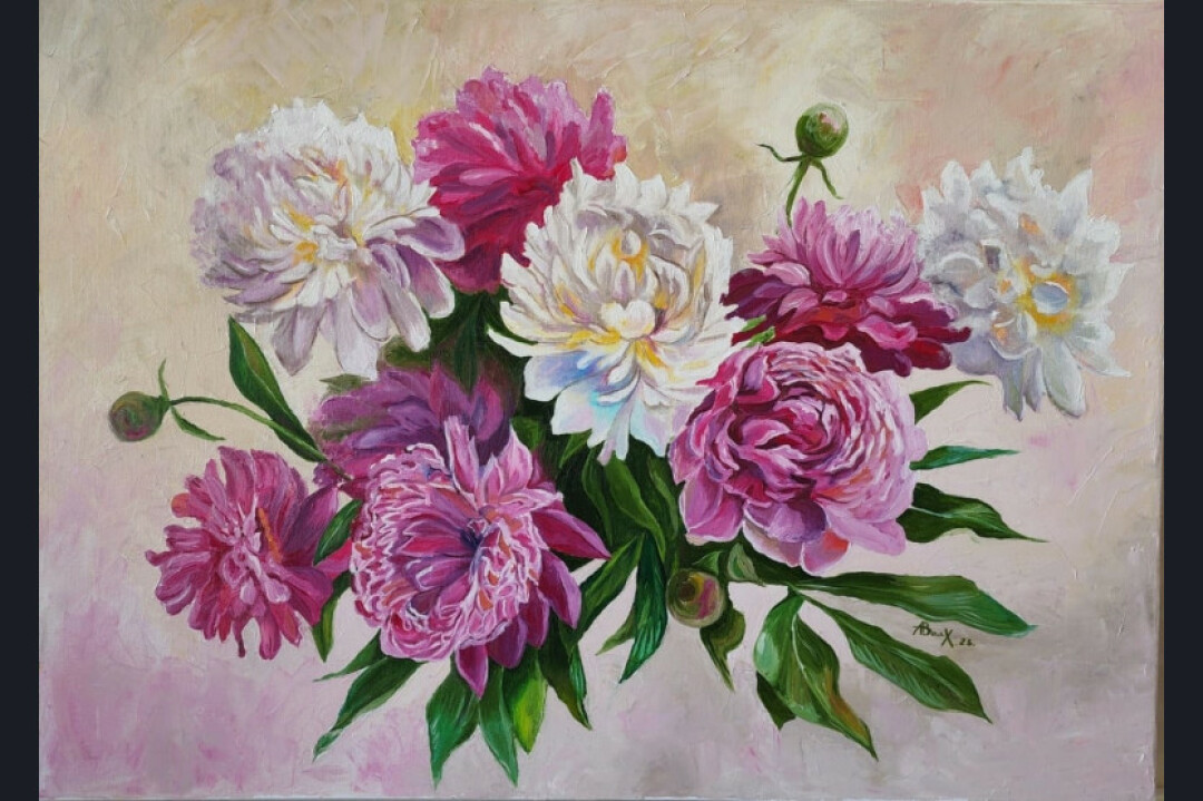 Картины в различных стилях, представленные на коллективной выставке, объединены общей темой любви к цветам.