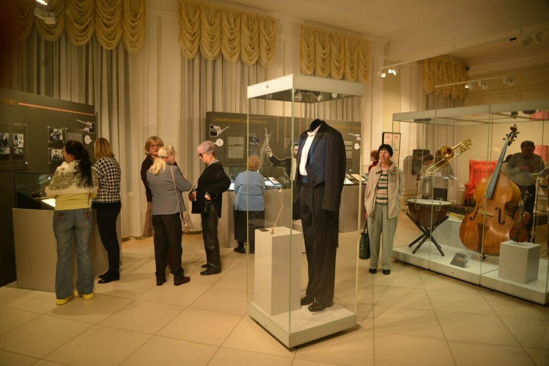 Среди экспонатов — рукопись дирижера, гастрольные записки, фото из личного архива, многочисленные награды, присужденные Арнольду Михайловичу и симфоническому оркестру, которым он руководил полвека.