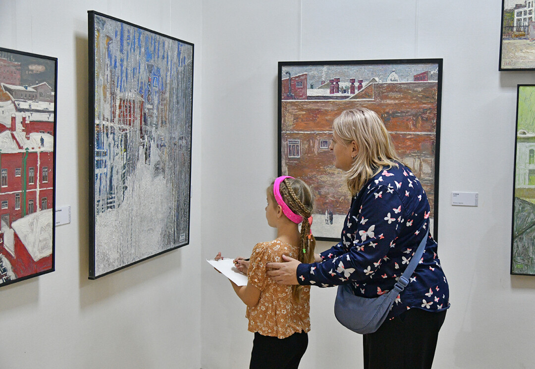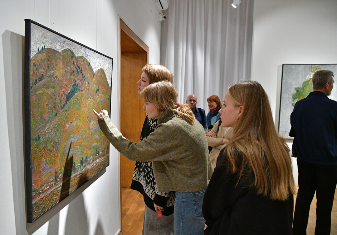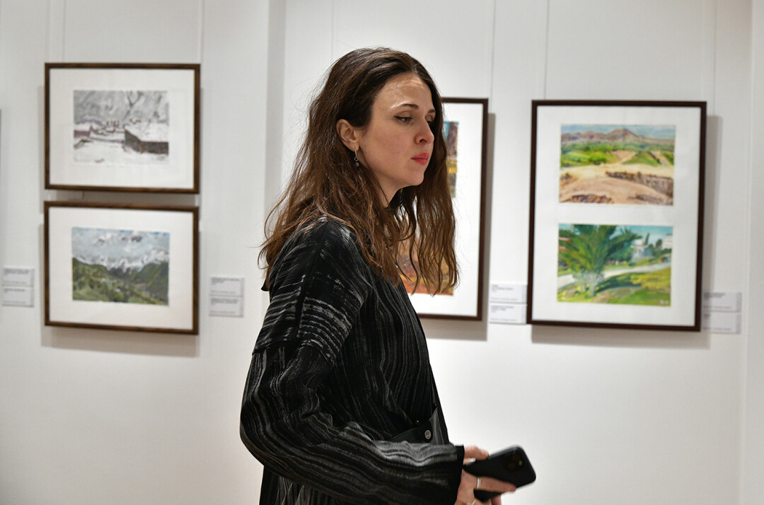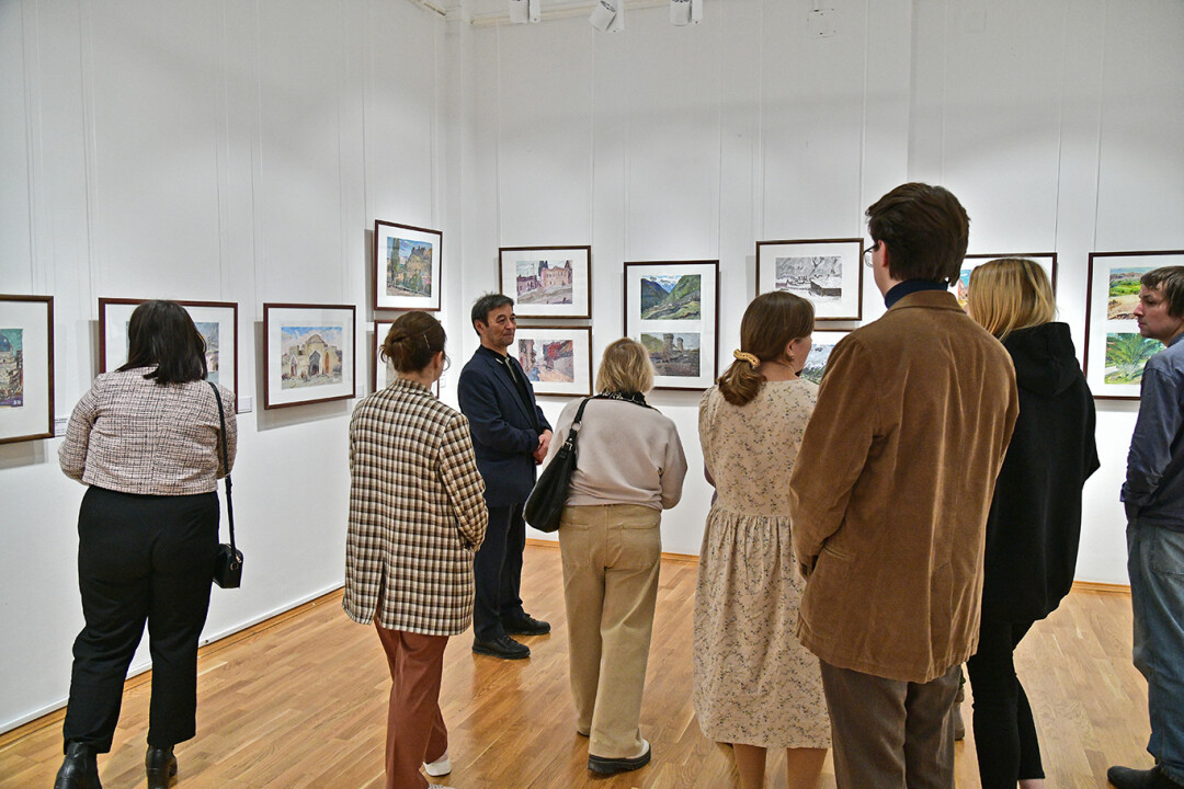 После открытия Геймран Баймуханов провел авторскую экскурсию для первых посетителей выставки, на которой рассказал об истории создания некоторых своих работ, техниках и художественных приемах.