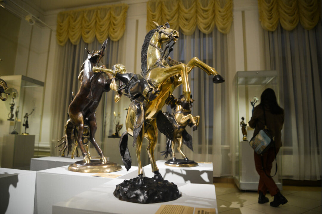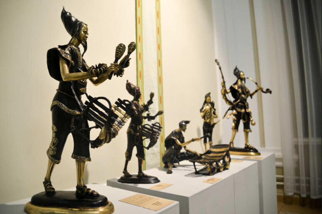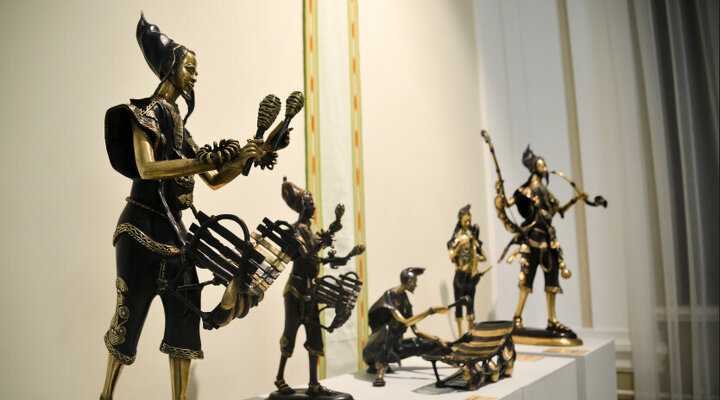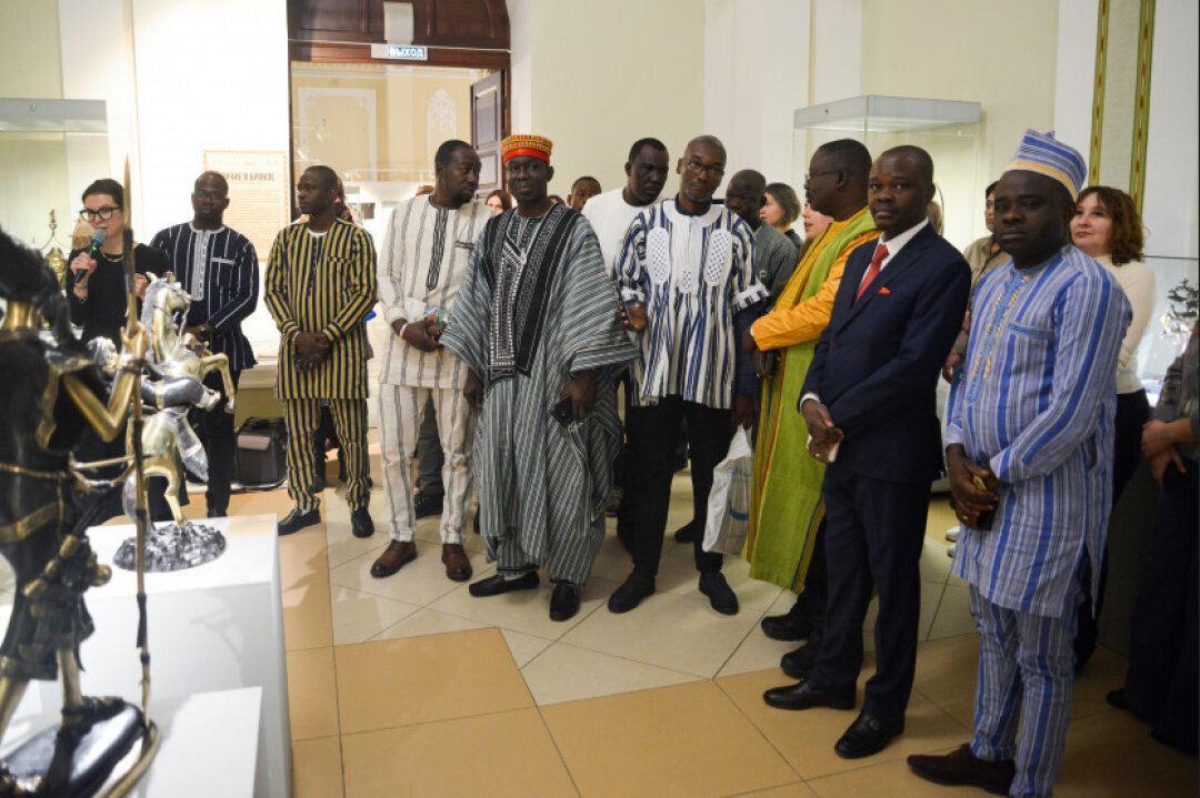 Выставочный зал украсила коллекция работ современных мастеров мирового уровня. Буркинийские скульптуры изготавливаются по древнему методу «потерянного воска». Восковая модель, покрытая огнеупорным материалом, отправляется в печь. Полая форма, оставшаяся после плавления воска, заполняется бронзой. Особенность приёма в том, что полученную металлическую скульптуру в точности повторить невозможно, что делает каждое произведение уникальным. Сюжеты композиций вдохновлены природой и повседневной жизнью: это человеческие фигуры, животные, предметы обихода, сцены из сельской жизни, а также современные мотивы, например, изображения танцовщиц.