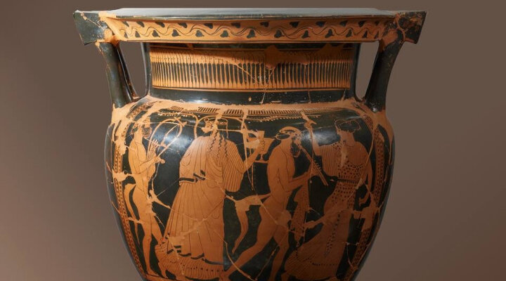 У каждого из сосудов – амфор, кратеров, пелик, ойнохой, лекифов, киликов – свои форма, предназначение и роль. В Древней Греции глиняные сосуды использовались как в быту, так и в религиозных церемониях, погребальных ритуалах. Персонажи, изображенные на вазах – греческие боги Афина, Дионис и его свита, Геракл, фантастические персонажи, люди, животные и окружающие их предметы – оживляют перед посетителем древнегреческую историю и мифологию.