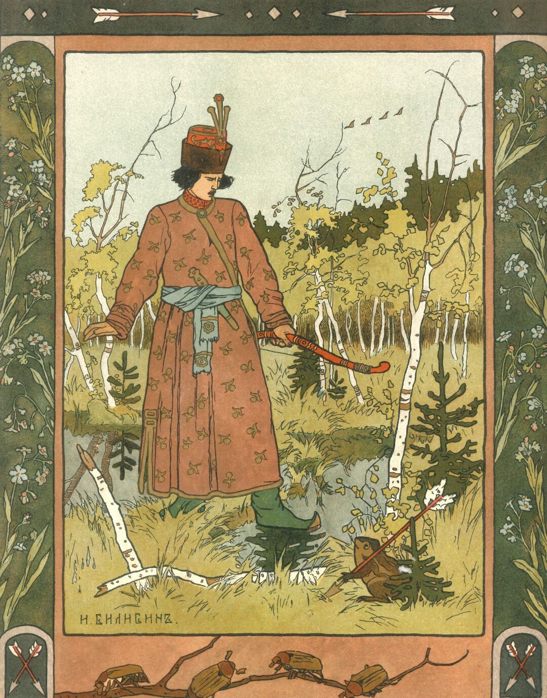 Билибин также придерживался концепции «ансамблевой книги»: он насыщал издания орнаментами, разрабатывал заставки и финальные рисунки, заключал иллюстрации в рамки, напоминающие резные наличники северных изб. Благодаря этому каждая книга становилась самостоятельным художественным миром, где текст, изображение и декор образовывали единое целое.
