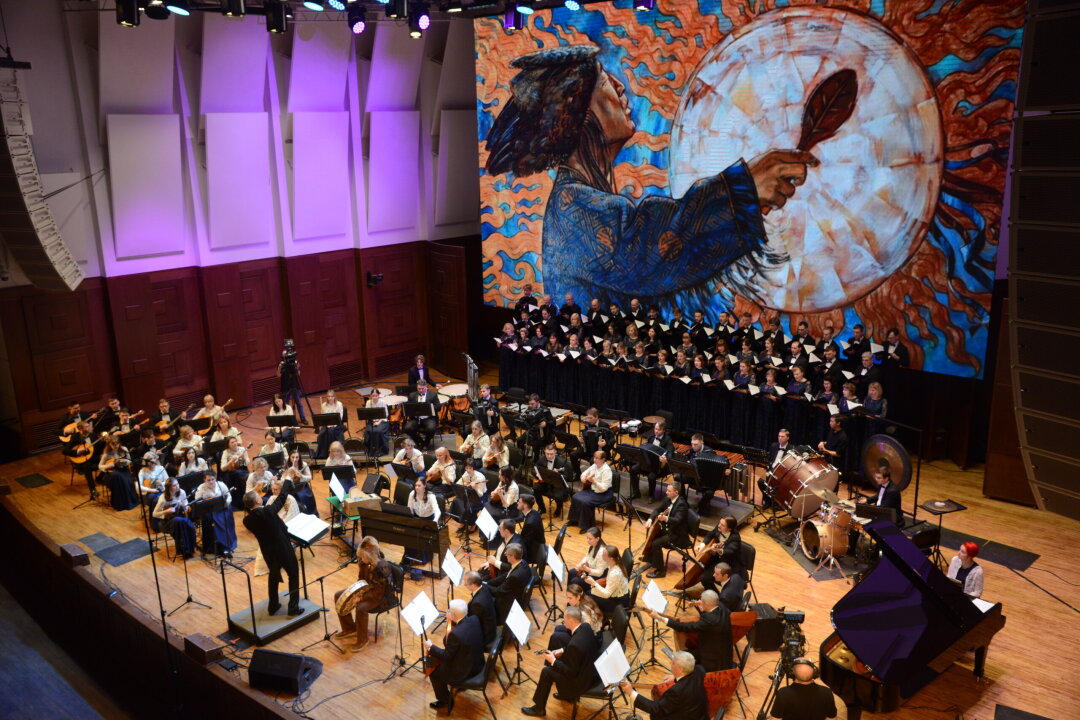 Произведение исполнил флагманский коллектив фестиваля – Русский академический оркестр совместно с Новосибирской хоровой капеллой.