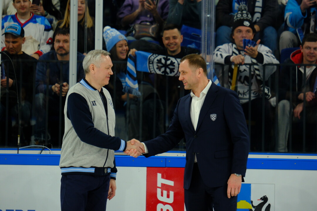 Губернатор Андрей Травников, первый заместитель председателя Государственной думы РФ Александр Жуков и президент Континентальной Хоккейной Лиги Алексей Морозов вместе с тысячами новосибирцев наблюдали полуфинальные матчи Фонбет Недели звёзд хоккея.