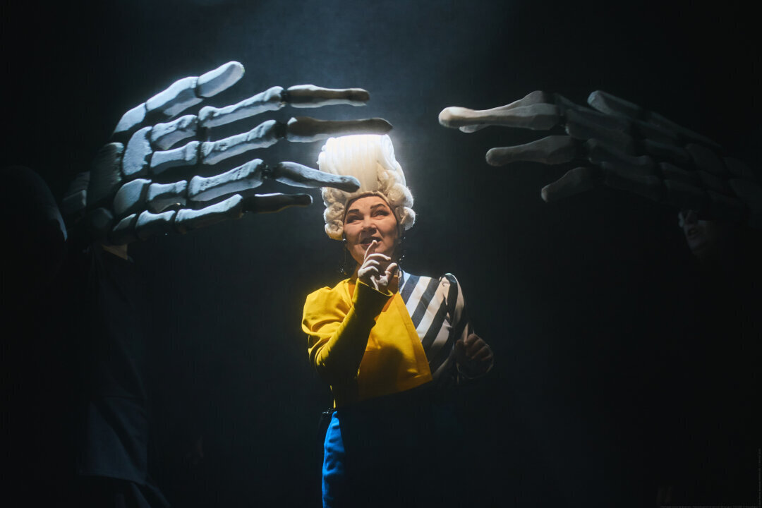 Мистический и слегка жутковатый мир спектакля по мотивам новеллы Оскара Уайльда «Кентервильское приведение» придумала художник-постановщик Александра Павлова. В спектакле много сюрпризов — ростовые куклы, видеографика, спецэффекты, живой вокал и потрясающая игра артистов.
