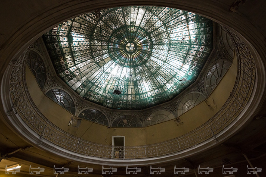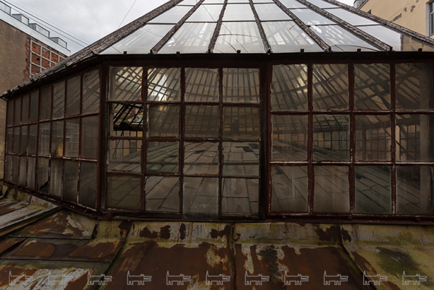 Архитектор Вик­ тор Шретер облицевал фасад банка вюртем­ бергским песчаником, а операционный зал впервые в России ре­ шил с использованием новаторских для того времени инженерных конструкций: двухуров­ невый и круглый по форме, он перекрыт стеклянным куполом с витражными секциями, фермы которого опира­ ются на металлические колонны. Здание, из которого несколько лет назад выехал Торговоэкономический техни­ кум, требует серьезной реставрации.