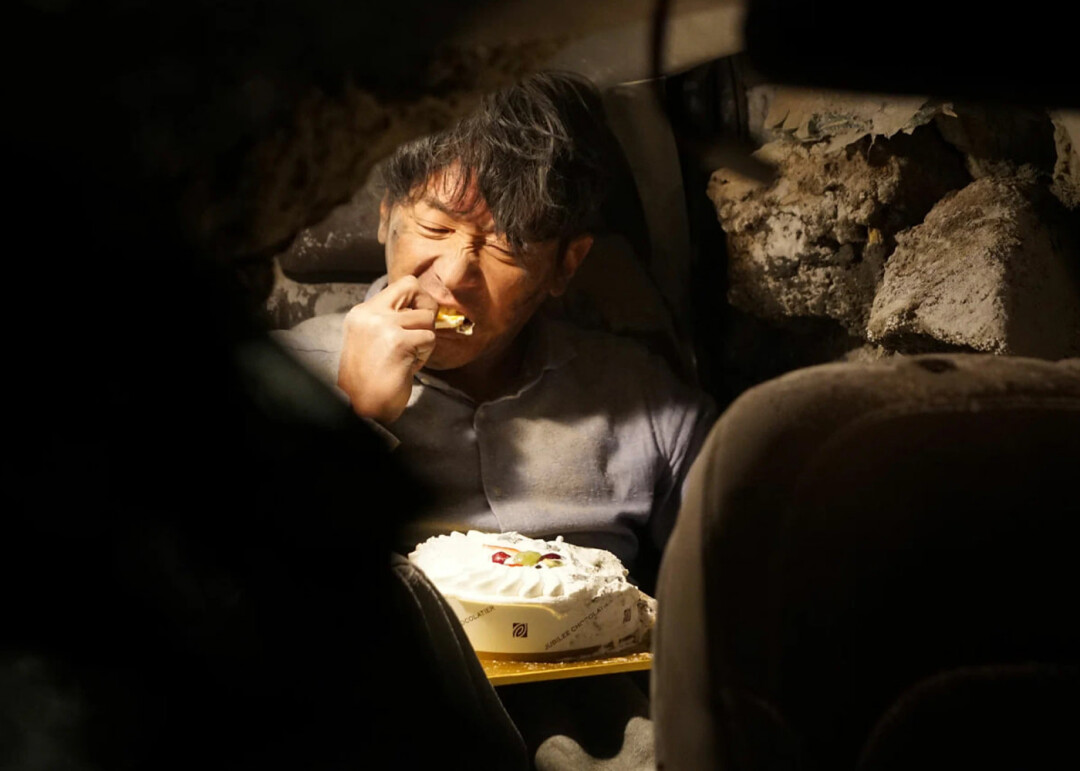 — Продавец автомобилей Ли Джон-су возвращался домой после удачной сделки. В его машине был торт на день рождения любимой дочки, две бутылки воды и телефон, заряженный на три четверти, когда горный тоннель, в который въехал наш герой, застонал, вздрогнул и обрушился. Погребённый под десятками тонн бетона и горной породы Ли Джон-су был уверен, что его спасение — вопрос нескольких часов. Ли Джон-су ошибался.