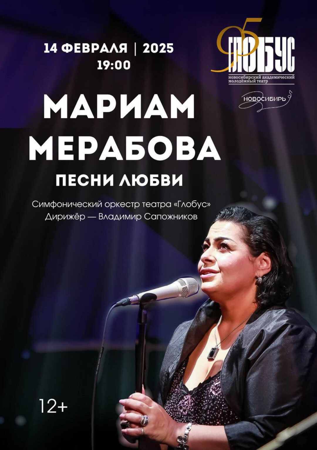 В День всех влюбленных Мариам Мерабова выступит с симфоническим оркестром театра «Глобус». Концертная программа «Песни любви» – настоящее событие для поклонников эстрадной музыки, соула, джаза и истинное наслаждение для любящих сердец.