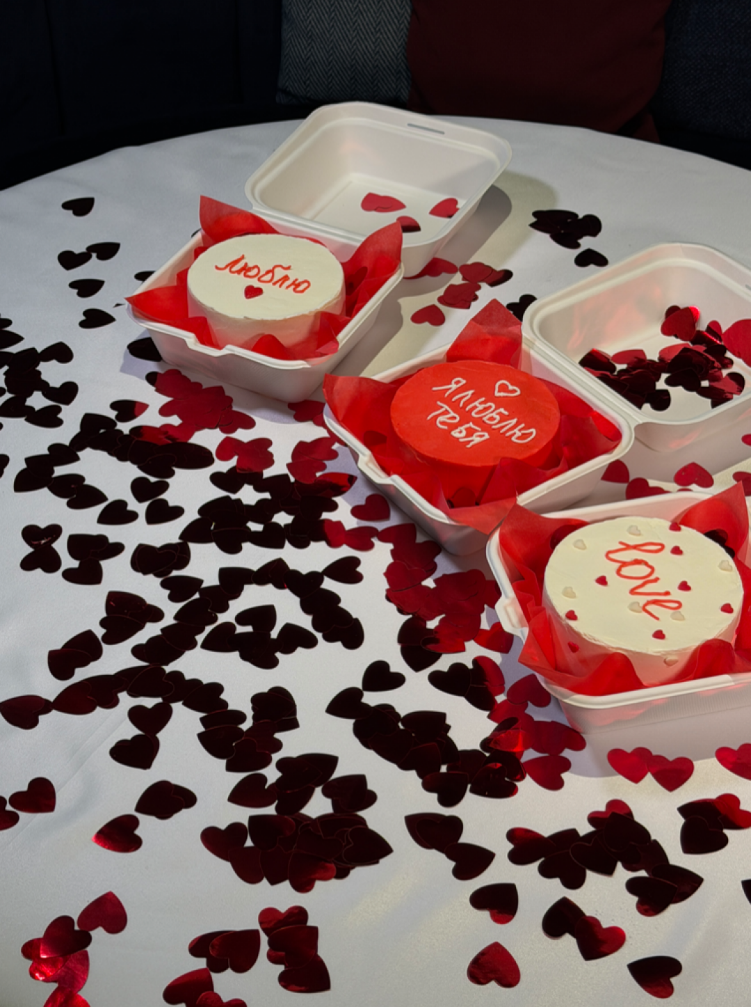 В качестве подарка для любимого или любимой в «Магадане» подготовили бенто-торты в романтическом оформлении. Они доступны по предзаказу с 13 по 15 февраля. При оформлении заказа гость может выбрать цвет и надпись. Варианты вкусов: шоколадный, красный бархат и ванильный с грушей.