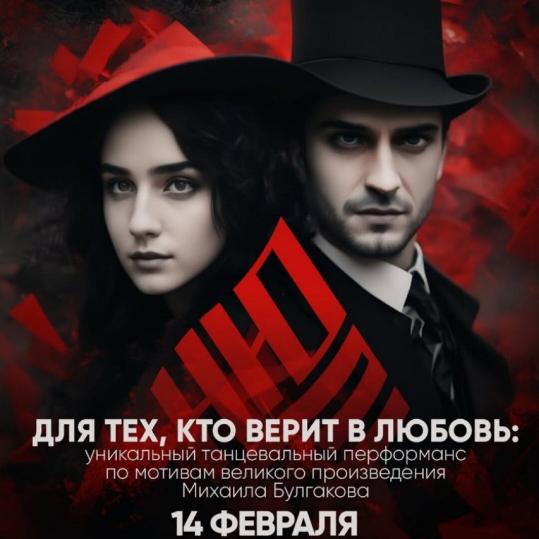14 февраля «Нюра» приглашает на спектакль по мотивам великого романа «Мастер и Маргарита» Михаила Булгакова. Короткая постановка в нескольких танцевальных актах, которая расскажет вам о вечной истории любви!