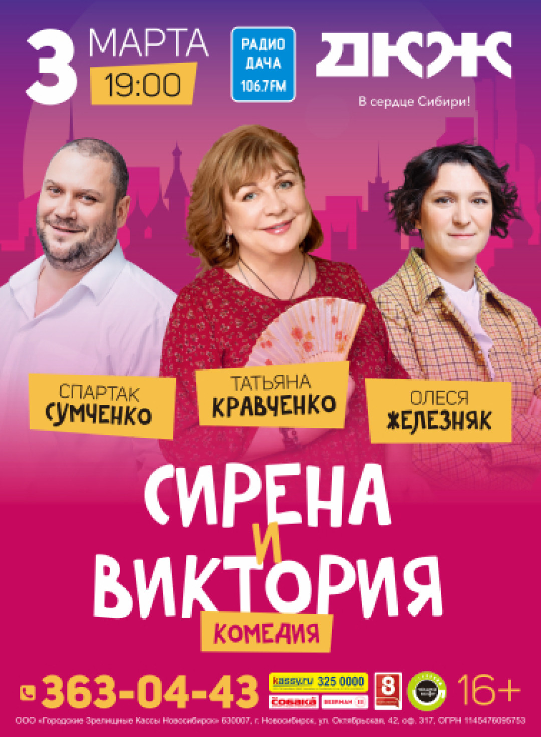 Главные героини спектакля «Сирена и Виктория» — две подруги. Сирена — успешная предпринимательница, которая добилась больших успехов в бизнесе. Виктория — скромный педагог, натура тонкая и изысканная.