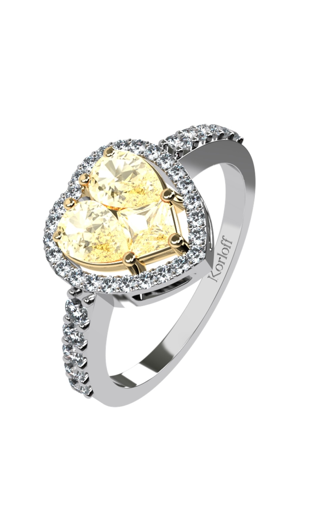 В общей сложности сиятельное кольцо украшают 39 бриллиантов, включая три желтых, из которых сложено сердце. Мы согласны!