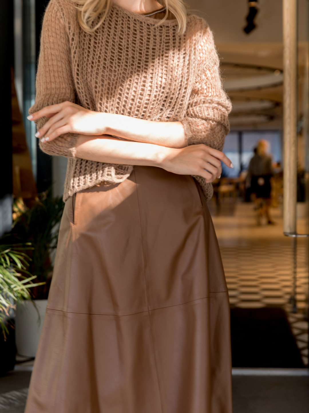 1. Тренд – кожа. Кожа – не только модный и трендовый, но еще и благородный материал, позволяющий создавать изящные комплекты по любому случаю, включая торжественные и праздничные аутфиты. Правильно обыграв модные кожаные вещи, можно также включить их в деловой образ.